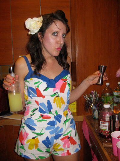 a few months ago(or now seasons ago) my friend had the cutest Bachelorette Party….and its theme was Pin-Up girl. So we all got dressed up in heels, flowers, bows, red lips, polk a dots, short shorts. I made this popular cocktail that the girls would drink back in the days… “The Grasshopper”….it is a minty green color. It was very pretty and girly, and went well with all the fun pink decor.