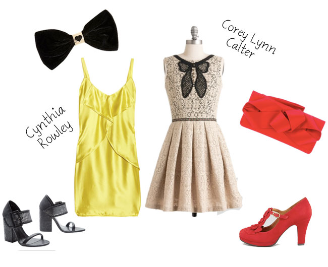 Outfit 1: | Black Bow | Lemony Cynthia Rowley Dress | Black Mesh Heels |