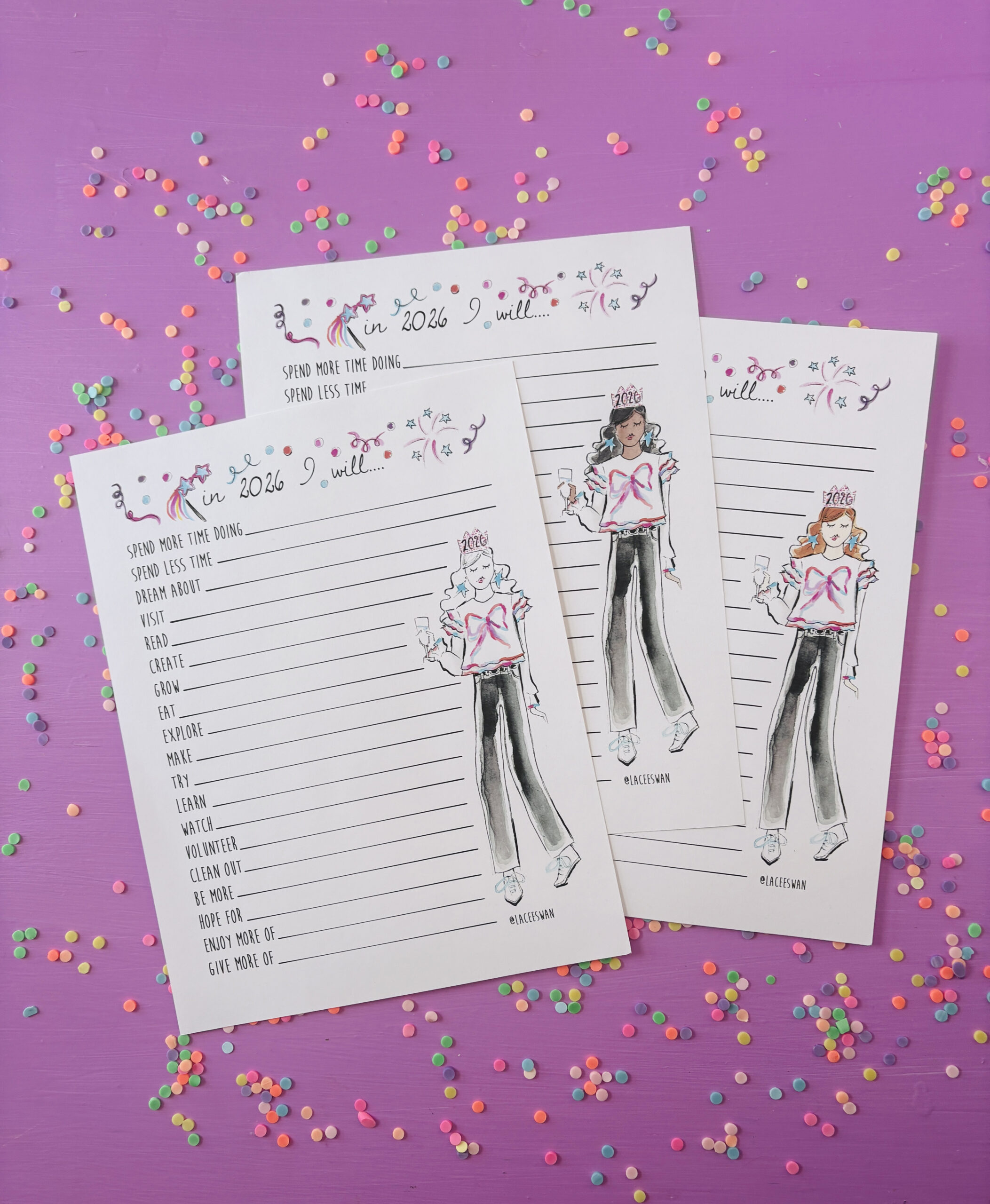Cheers to a New Year filled with intention-setting, creativity, and success. Here’s to living our lives with purpose and making the most of every moment! I created this fun printable so you can print in your hair color and skin tone. Just click here and the download will be sent instantly your way!
