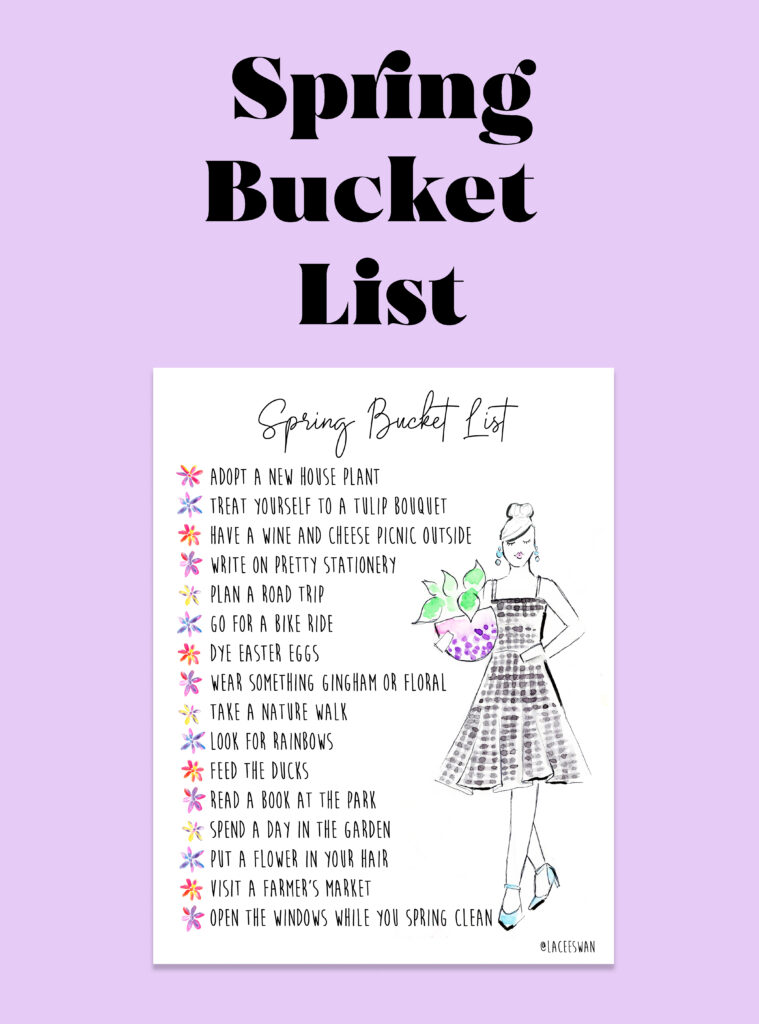 Celebrate the season with this adorable spring bucket list I created for you! Print it in your hair color and skin tone. Just add your name and email below and I will send it to you! Happy spring!