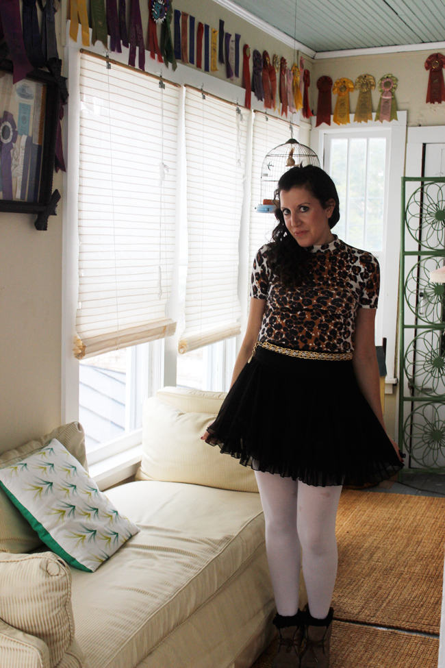 Outfit: Topshop knit top, Nanette Lepore Skirt, HUE white tights, vintage belt, lace socks from London, Clark Shoes