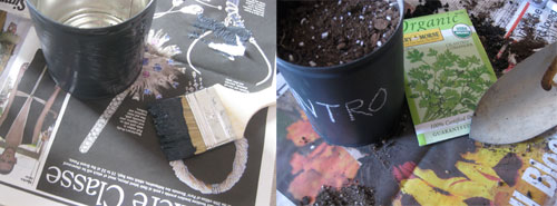 paint a few coats with Chalkpaint and let dry. For planting I used Cilantro, Mint and Basil. I have had great luck planting with Cilantro and Basil from the seeds. I haven’t tried Mint yet, so I picked up some already grown. It depends how patient you are 🙂 Basil usually grows like wildflower from the seed, at least from my experience 🙂