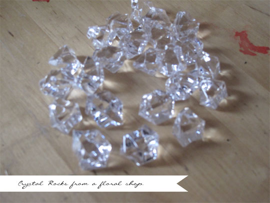 ~Crystal Plastic Rocks, I discovered these one day exploring the flower district here in New York. I wasn’t quite sure what i would make with them at the time. But I knew I would come up with something….they were too amazing to pass up!