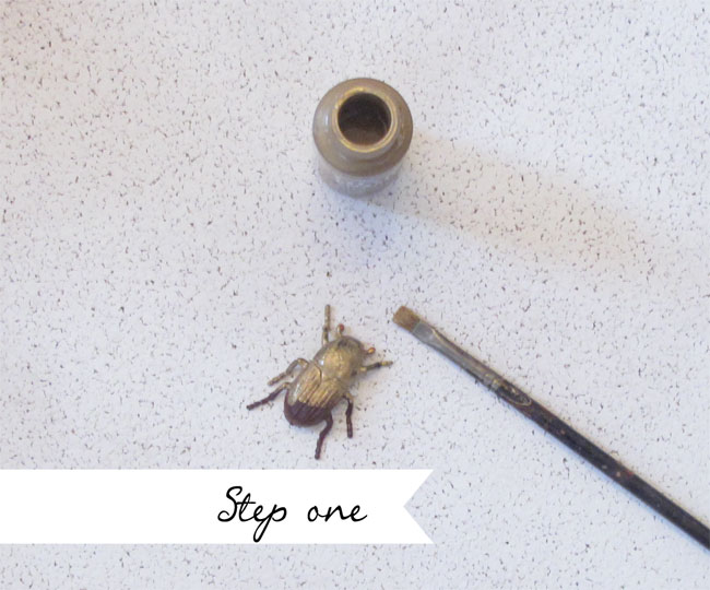 Step 1: Pain the bugs with gold, let dry. And then add another coat as needed.