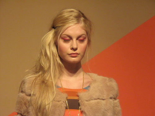 Obviously…..if you follow this blog at all, you know I’m a big fan of color! So but of course I am totally smitten with Corey Lynn Calter’s Fall 12 collection! Which was a kaleidoscope of brights, pattern and shine!!! A perfect mix of retro and ladylikeness. Fur collars, matching suits, pleated skirts, sequined dresses, floral printed satins were presented to us on a color-blocked background. Ms. Calter is also a FIT graduate, so as one myself too…..I definitely give her a high five for this collection!!