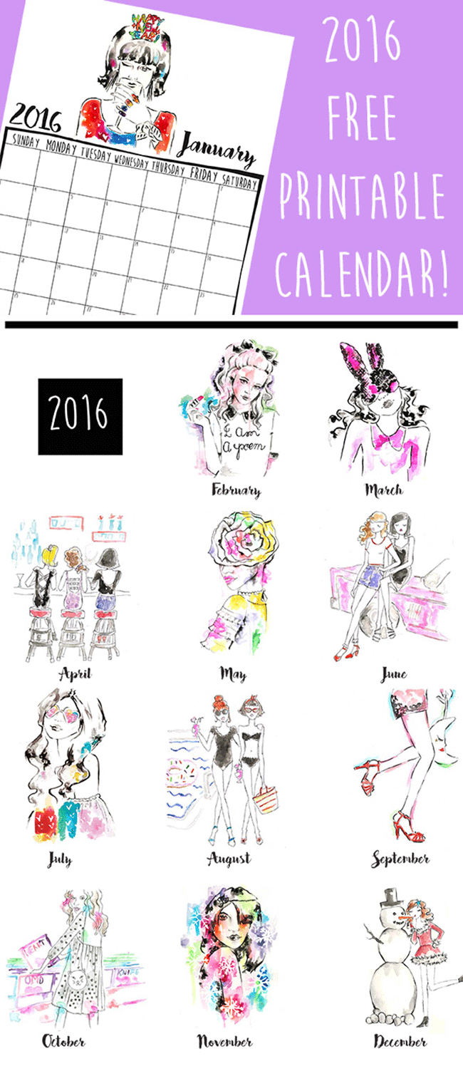 Click here to get the 2016 Free Printable Fashion Illustration Calendar!