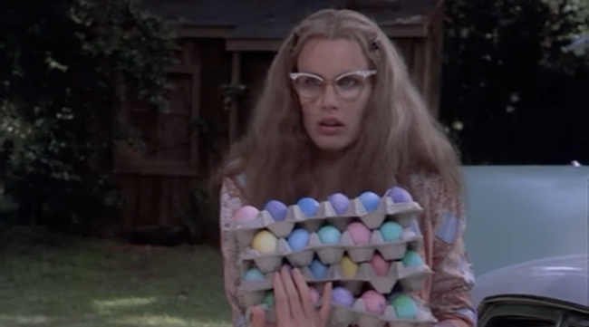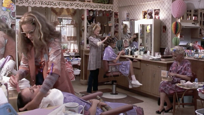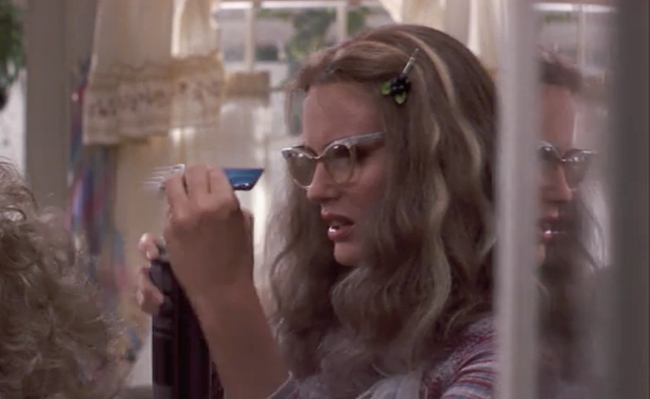 I’ll have a cherry coke please. How adorable is Daryl Hannah as Annelle in Steele Magnolia’s? I think I need to switch to cat-eyes now. Although the movie takes place in 1989, she has a 70’s vibe with her Missoni like top and hair centered down the middle. Well, whatever she has got going here, I’m obsessed.