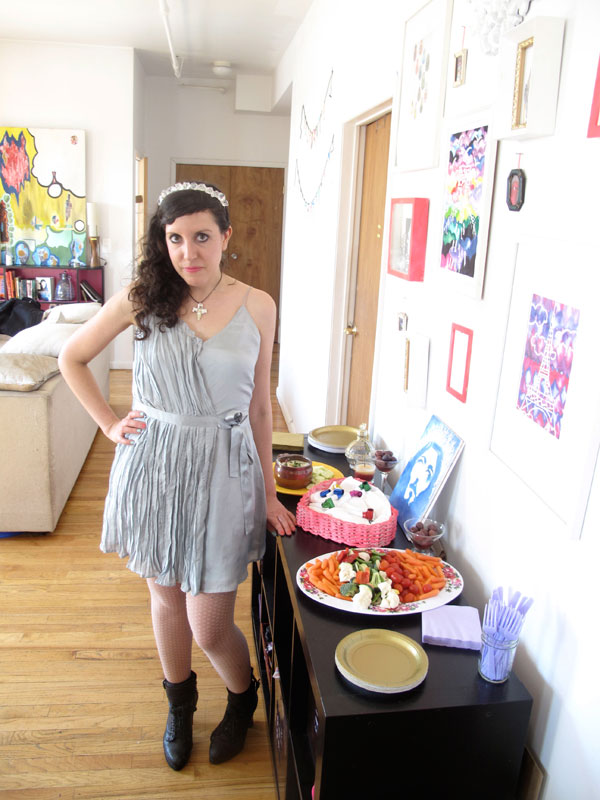 |Tiara, a DIY made by me here |cross-necklace by Brittany | Madison Marcus Dress | Vintage boots |