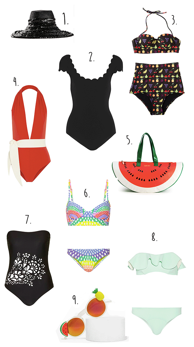 | 1 Gigi Burris Hat | 2 Marysia Swimsuit | 3 Modcloth Tetris Fruit |