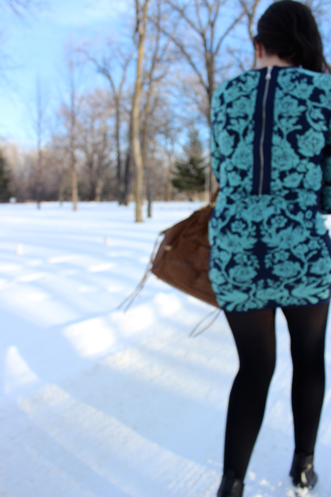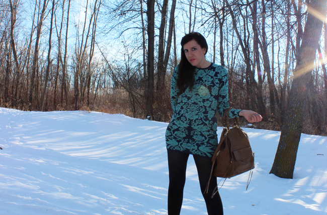 Outfit top to bottom: DIY Bunny Band, Torn By Ronny Kobo Knit Dress, Rebecca Minkoff handbag, Frye Company boots