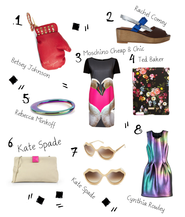 | 1 Betsey Johnson| 2 Rachel Comey | 3 Moschino Cheap & Chic | 4 Ted Baker | 5 Rebecca Minkoff | 6 Kate Spade | 7 Kate Spade | 8 Cynthia Rowley |