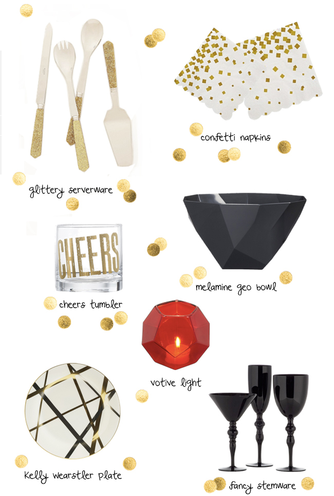 | glittery silverware | confetti cocktail napkins |