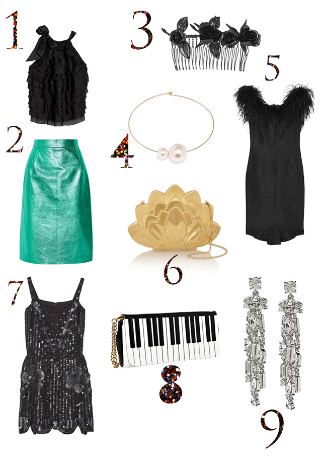 | 1 Cynthia Rowley | 2 Metallic Skirt | 3 Jennifer Behr Barette |